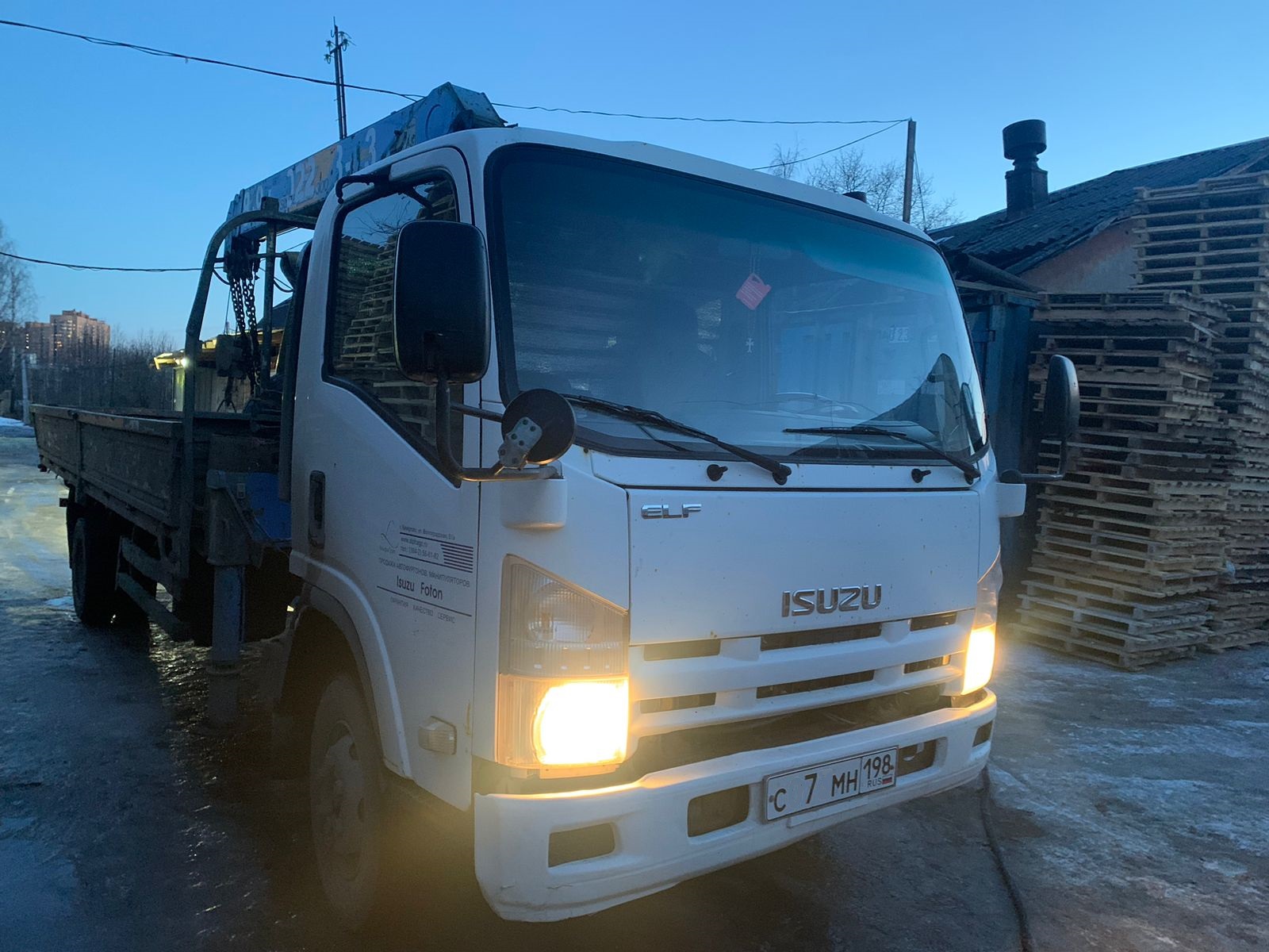 - Бортовой манипулятор Isuzu ELF.